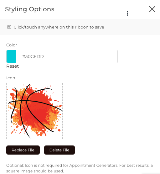 Styling Options: Choose the background color and upload an icon for this Appointment Generator.