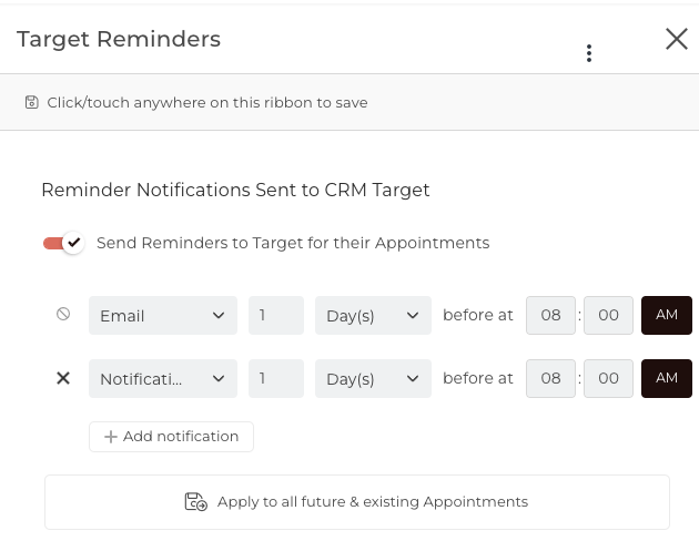 Target Reminders: Create reminders for the Contact to receive prior to their Appointment.