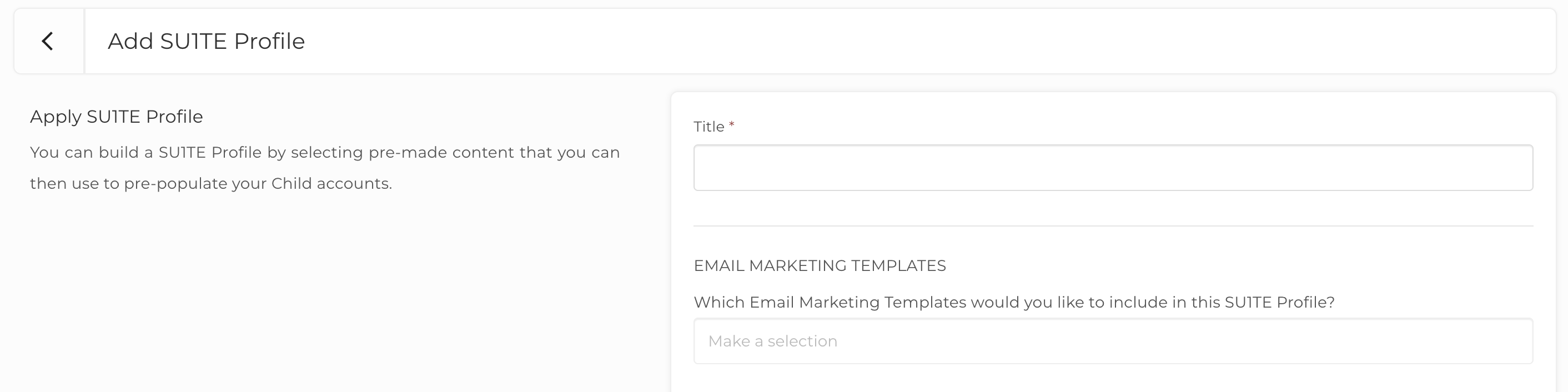 A SU1TE Profile is a framework of pre-built content that you can apply to a new Child Account. It is essentially a shortcut for you as a SU1TE Partner, so that you do not have to create the same content over and over again for each Child Account.