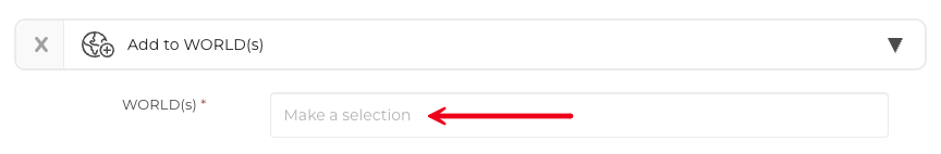 This Automation will either add or remove the target from a WORLD. You can select multiple WORLDs from the dropdown menu.