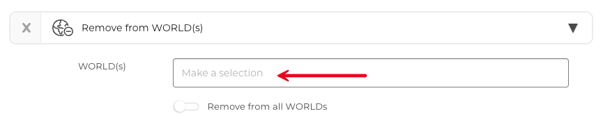 Alternatively, you can also use the remove from WORLDs automation to remove your Target from one or multiple WORLDs. The toggle button can also be clicked to remove the Target from all WORLDs.
