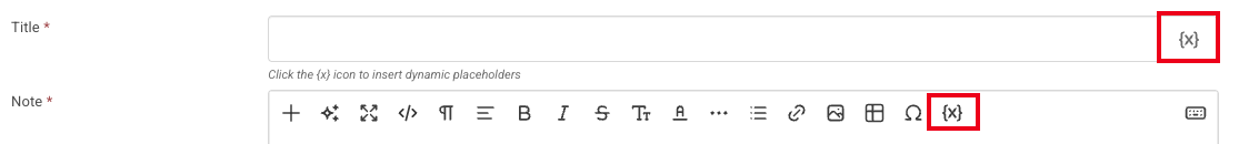 The Placeholder icon can be used to customize the note title and the note.