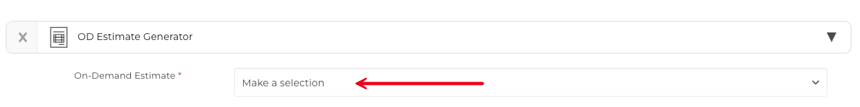 Click the 'Make a selection' box to access your list of pre-created On-Demand Estimate Generators.
