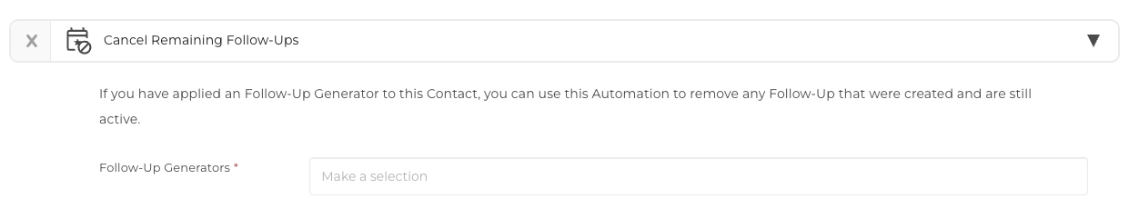 This Automation will remove/cancel any remaining Follow-ups in a currently used Follow-up Generator for the assigned Target.