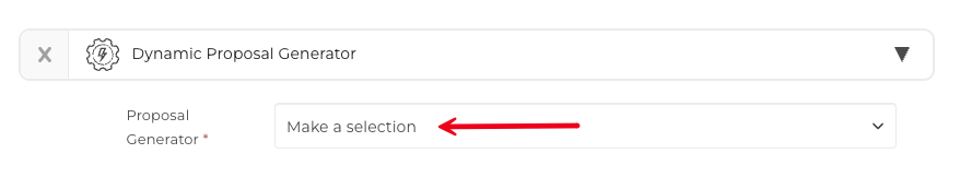Click the 'Make a selection' box to choose one of your pre-created Proposal Generators.