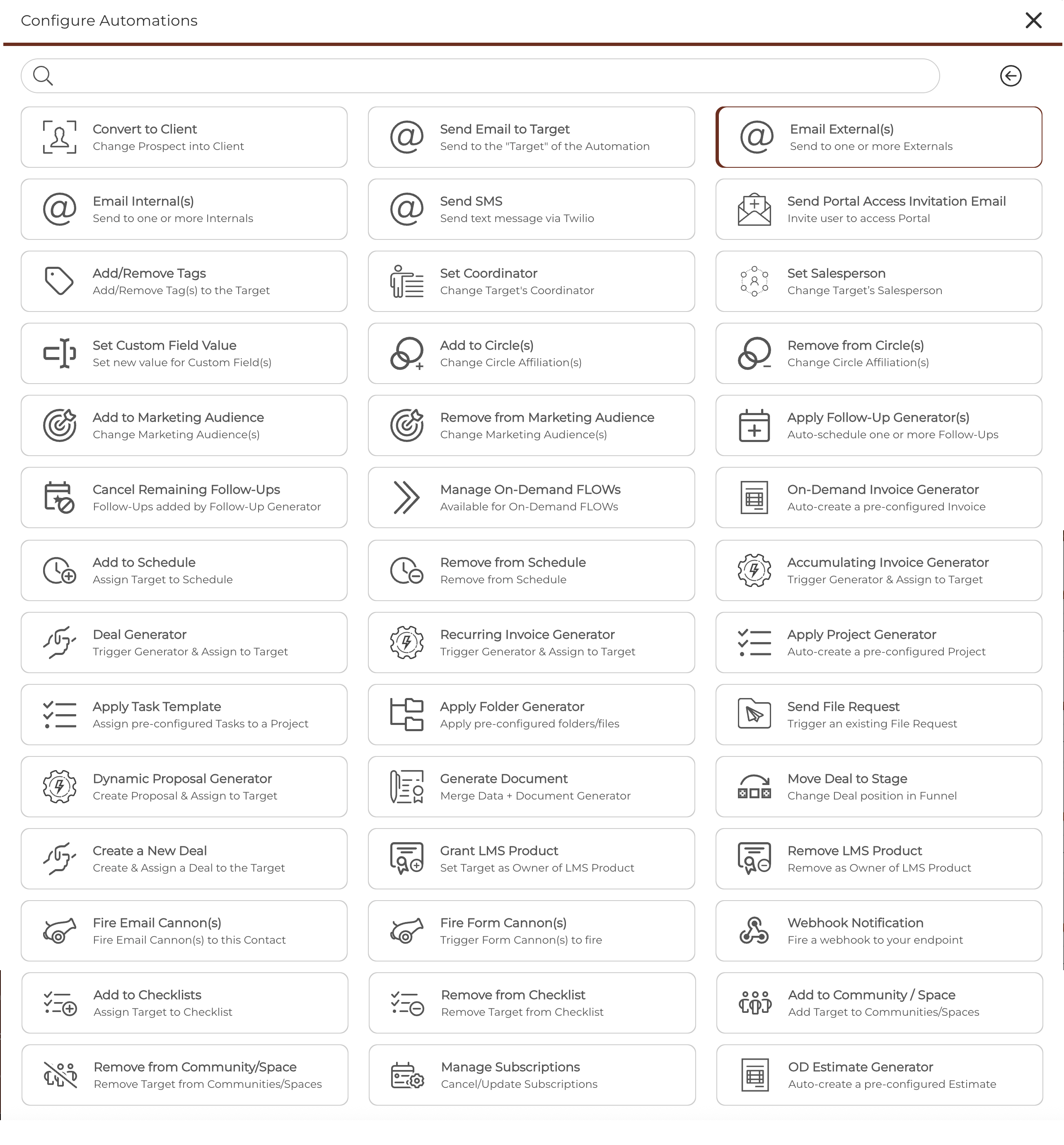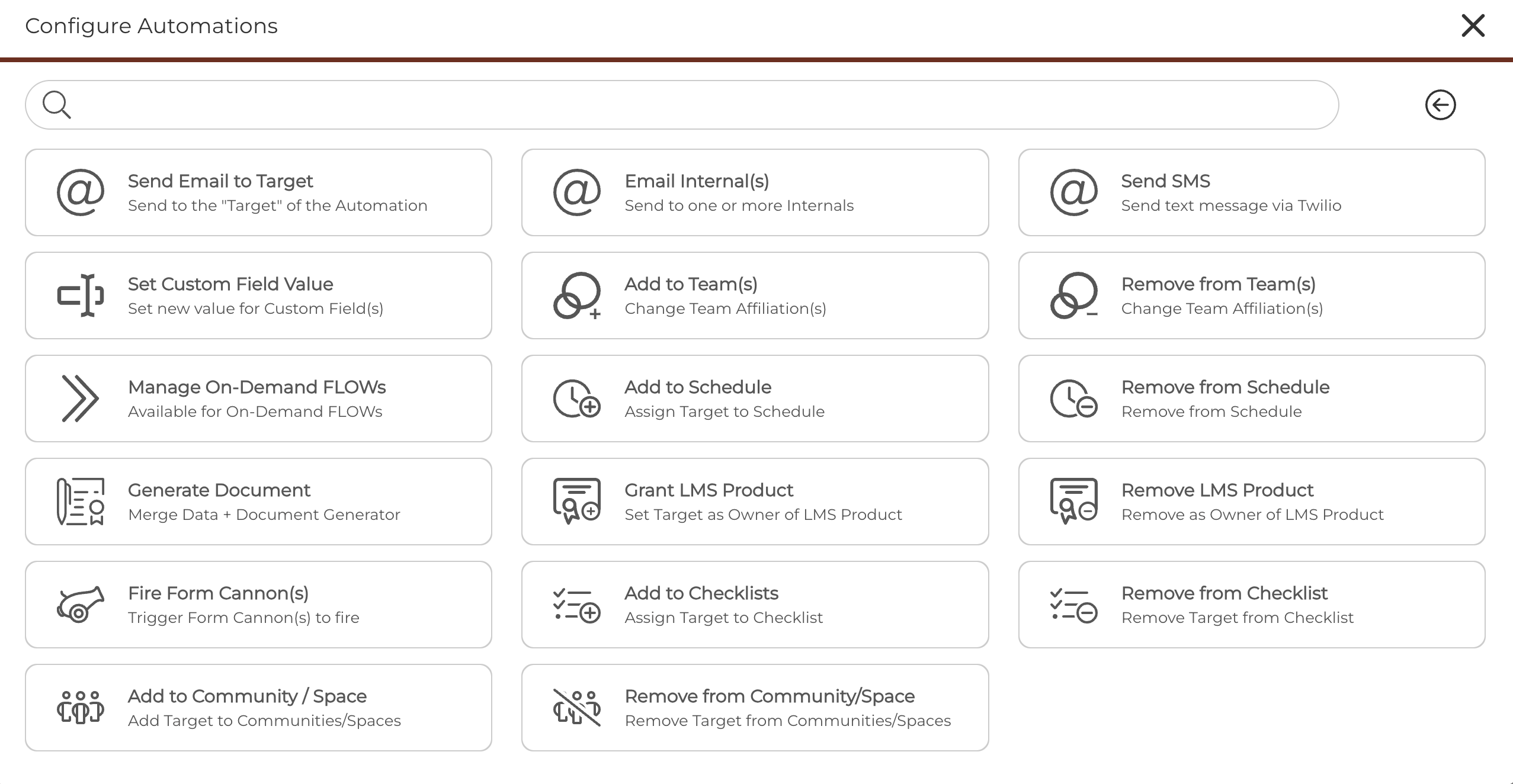 Clicking the + will bring you to a list of all available Automations for the Target Type that you have selected.