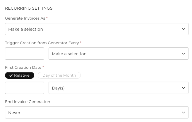 End Invoice Generation: Set your end condition for the Recurring Generator.