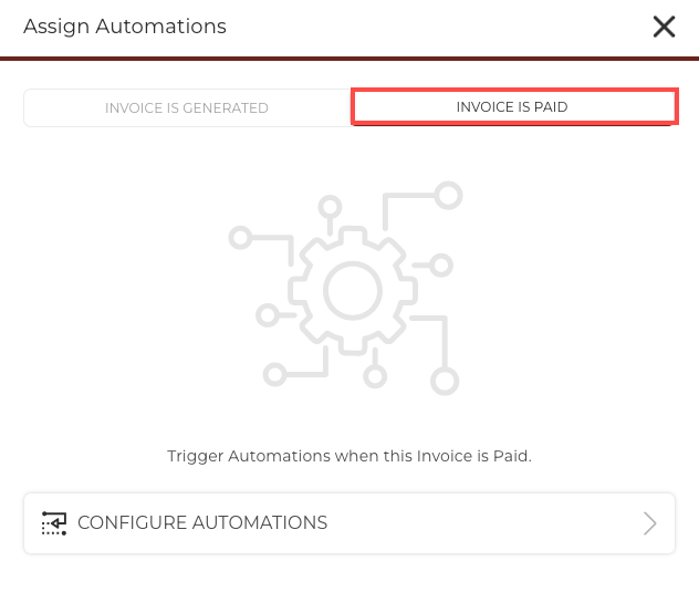 Assign Automations: Trigger Automations for when the Invoice is Generated and/or when the Invoice is Paid.