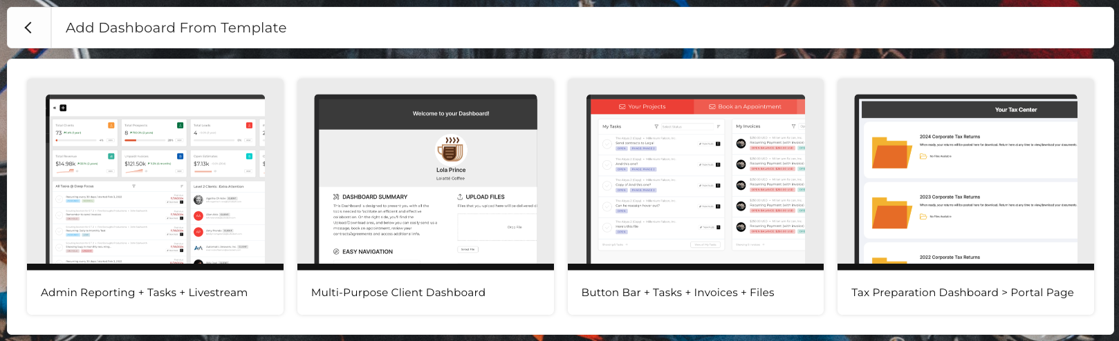 System Templates are pre-created templates that have be designed to provide a quick start option for when you are creating your pages. Each area has Four templates to choose from.