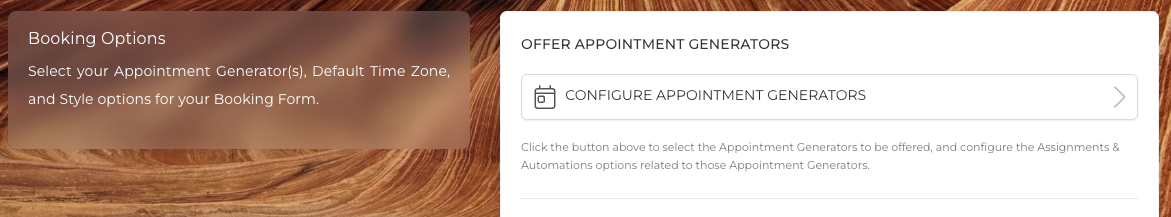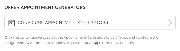 Click 'Configure Appointment Generators' to select from your active Appointment Generators and to add Assignments and Automations.