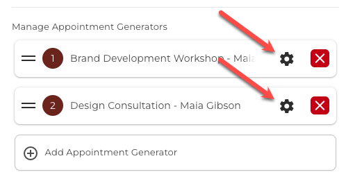 Click the Add Appointment Generator button to see all of your active Appointment options. You can select as many Appointment Generators as you need.