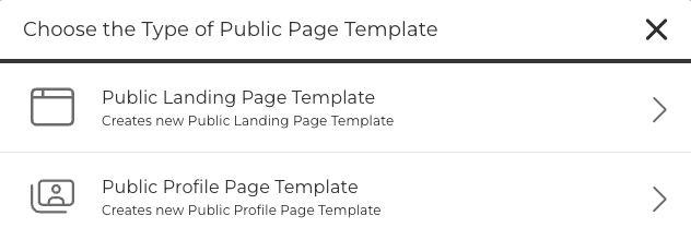 You'll be prompted to choose the type of Public Page Template