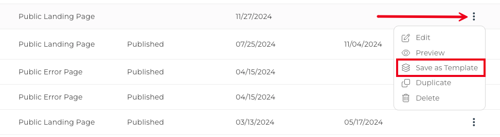 If you've created a Public Page and decide that you want to save it as a Template you can do that too!