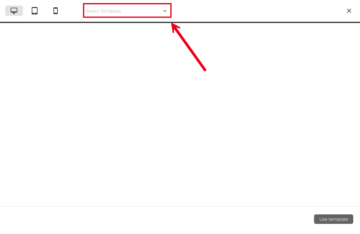 A modal will appear with a preview screen, in which you can choose your Public Page Template from the dropdown menu at the top.