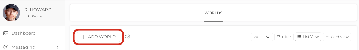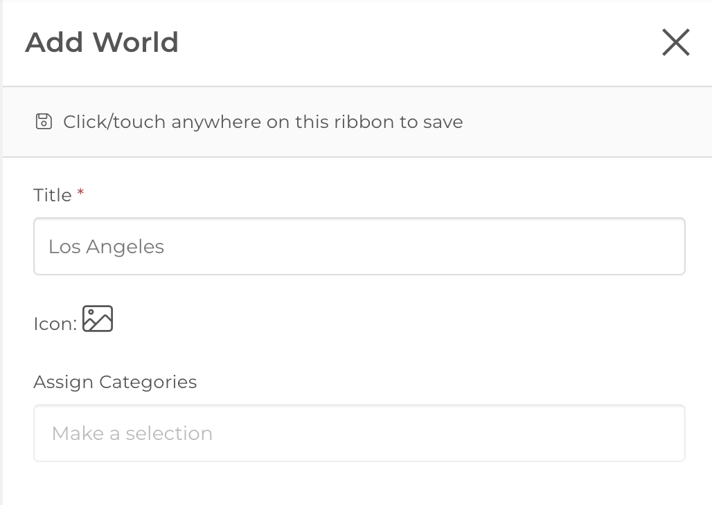You can now click the + ADD WORLD button to add a World Title and assign any relevant Categories.
