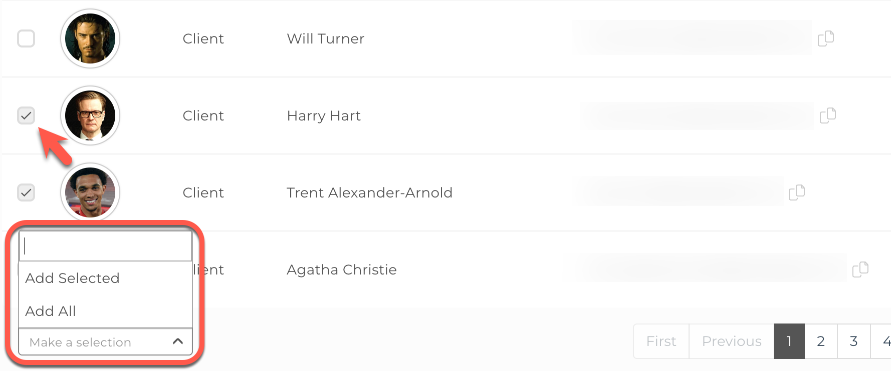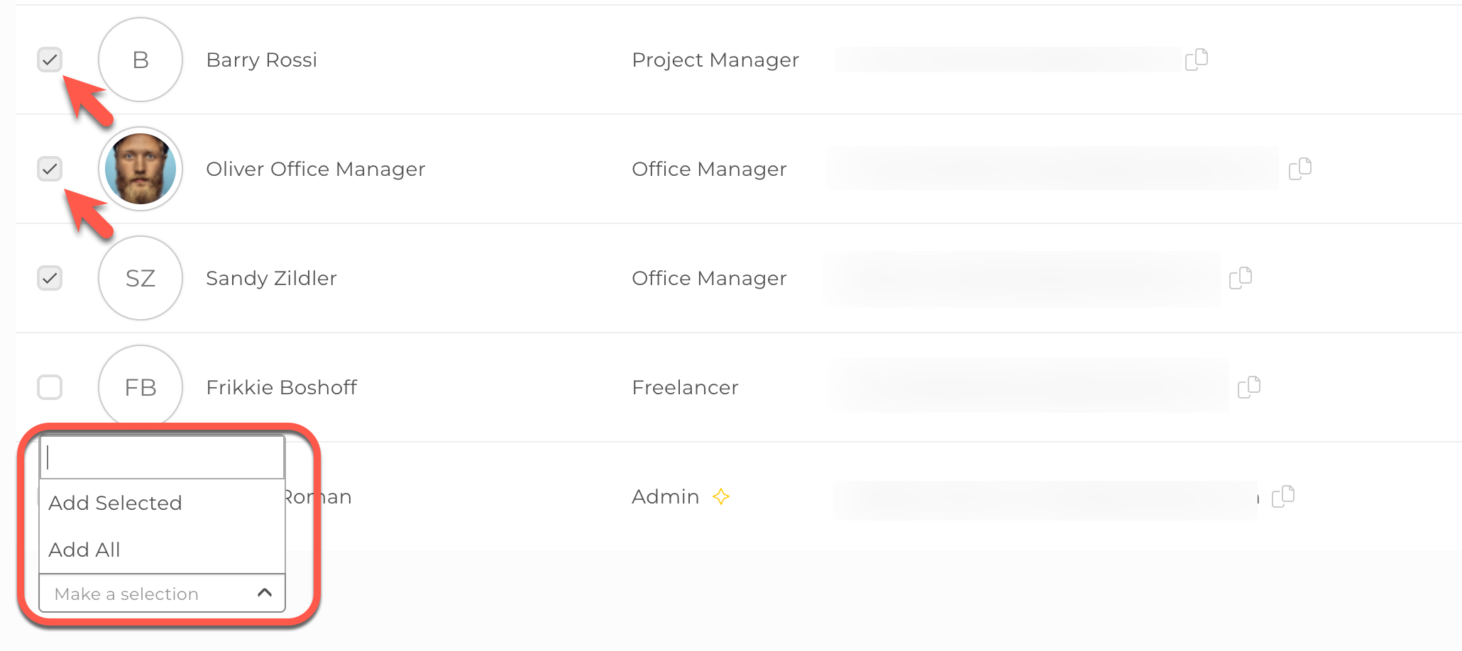 If you want to add multiple staff members, check the boxes on the left to select them, then click the Make a Selection button at the bottom of the page and choose Add Selected or Add All.