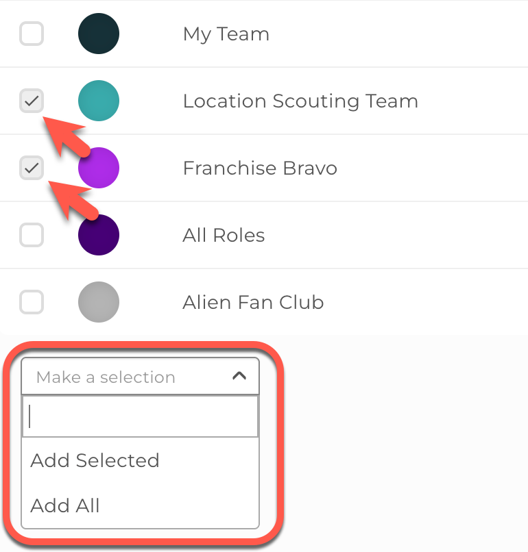 If you want to add multiple Teams, check the boxes on the left to select them, then click the Make a Selection button at the bottom of the page and choose Add Selected or Add All.