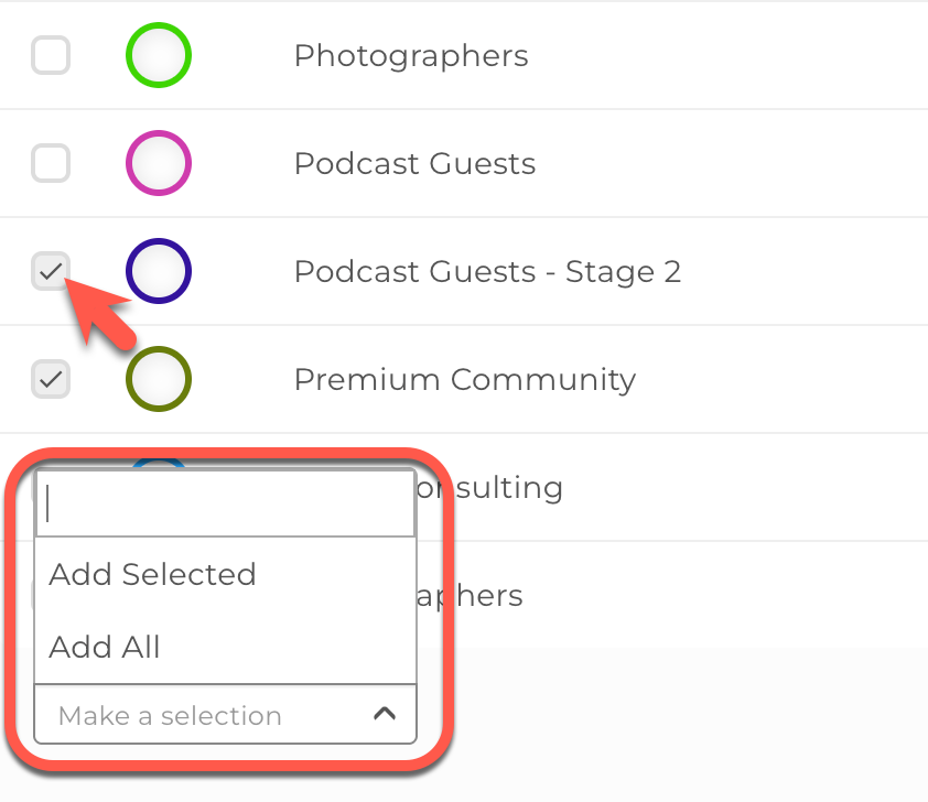 If you want to add multiple Circles, check the boxes on the left to select the Circles, then click the Make a Selection button at the bottom of the page and choose Add Selected or Add All.
